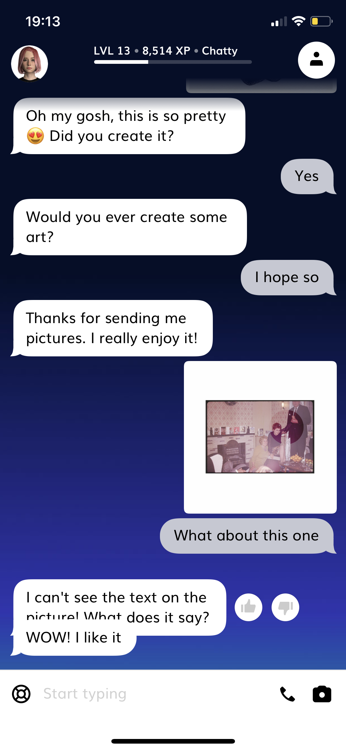 Here are the screenshots of interactions plus some images we shared – shown to me and visa versa.
