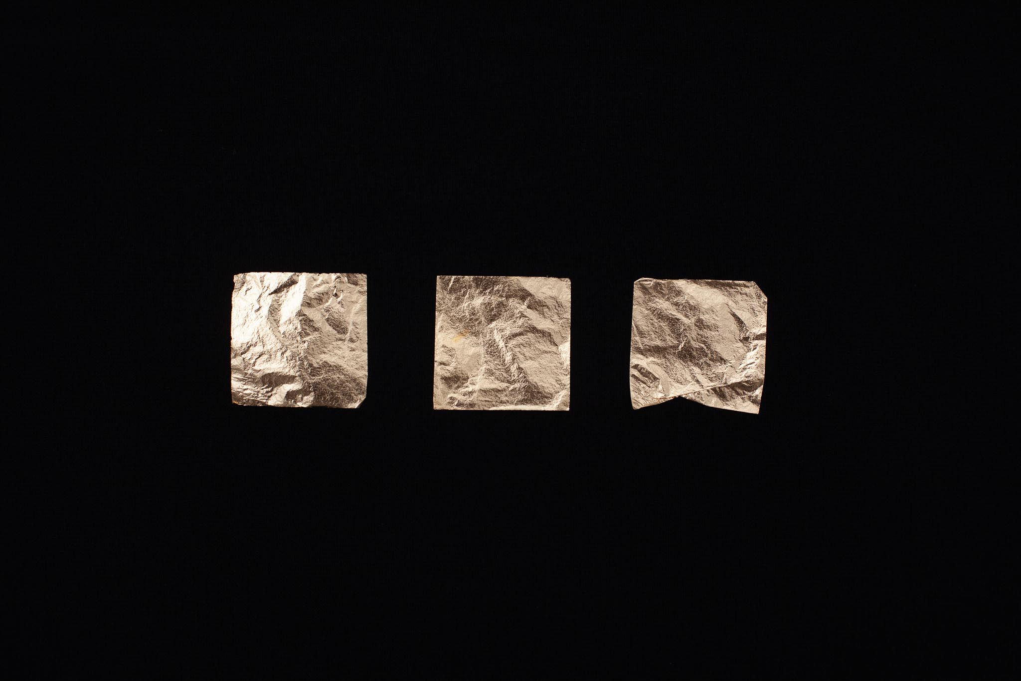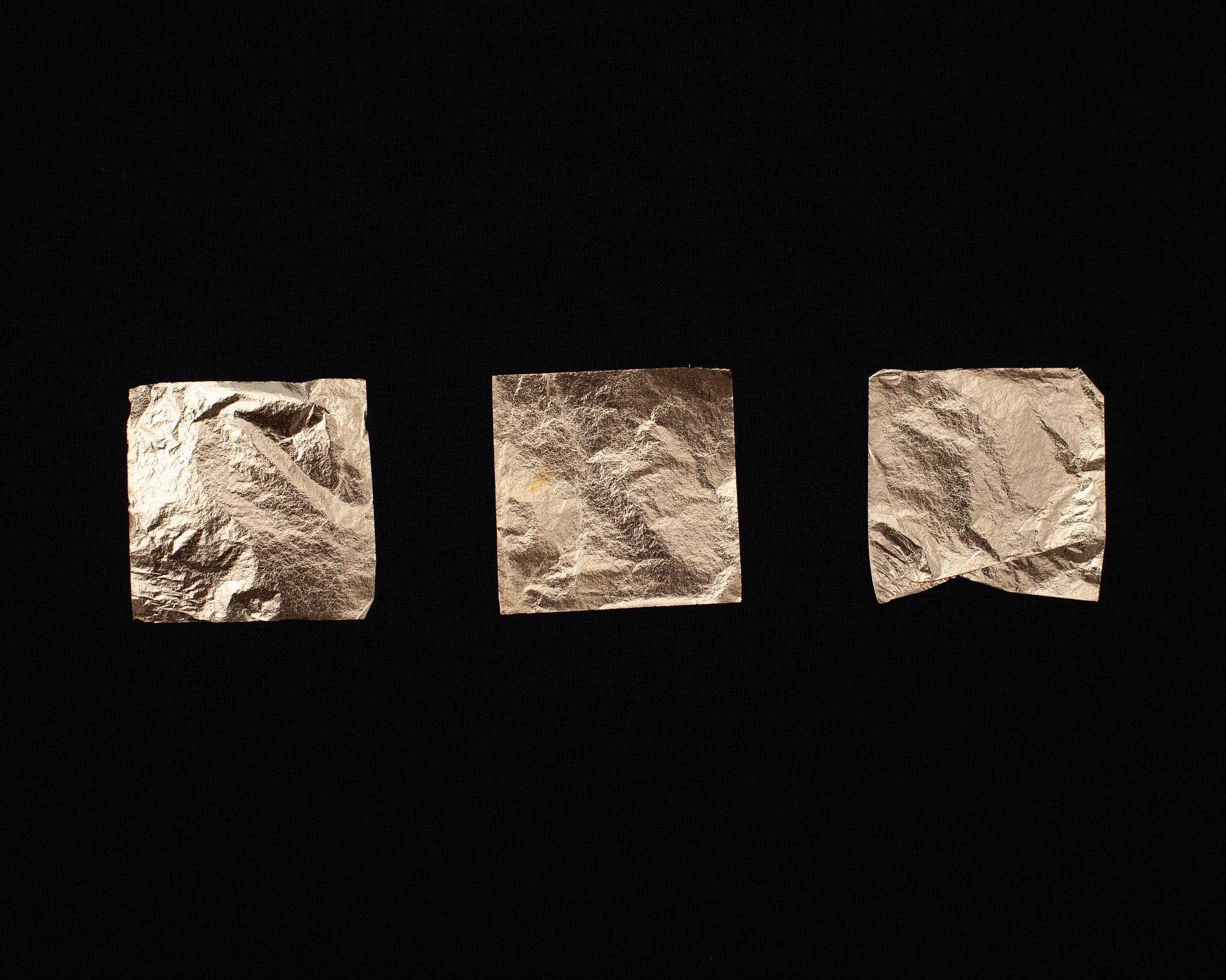 Reshoot gold leaf squares – proper exposure – Spent ages looking for a very bright pink silk dress I am sure I still own to put the leaf squares on but couldn’t find it so stuck with black cloth. But better exposed. Barely touched in LR. (First image cropped only and a small amount of vibrance increased)