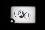 The most interesting image for me was when I used my own 50mm, and included the various signs of age and wear and tear. The reason I like this one is it looks like a cinema screen. I suspect it would be better if I manipulated the lines so it’s more accurately square on (I tried my best in-camera – maybe I’ll ignore the other pics which don’t excite me at all and give this another try tomorrow evening.) I will include some of the others but I can’t see myself taking them any further. I also shot a blade on the lightbox but I will try other ways of shooting it, I think. There’s a great passage in the Barad book where she uses the shadow of a blade to explain how diffraction works and does weird things. So it’s not only a good signifier of slicing, potential pain, a reference to Un Chien Andalou – it’s also a prop for Barad.