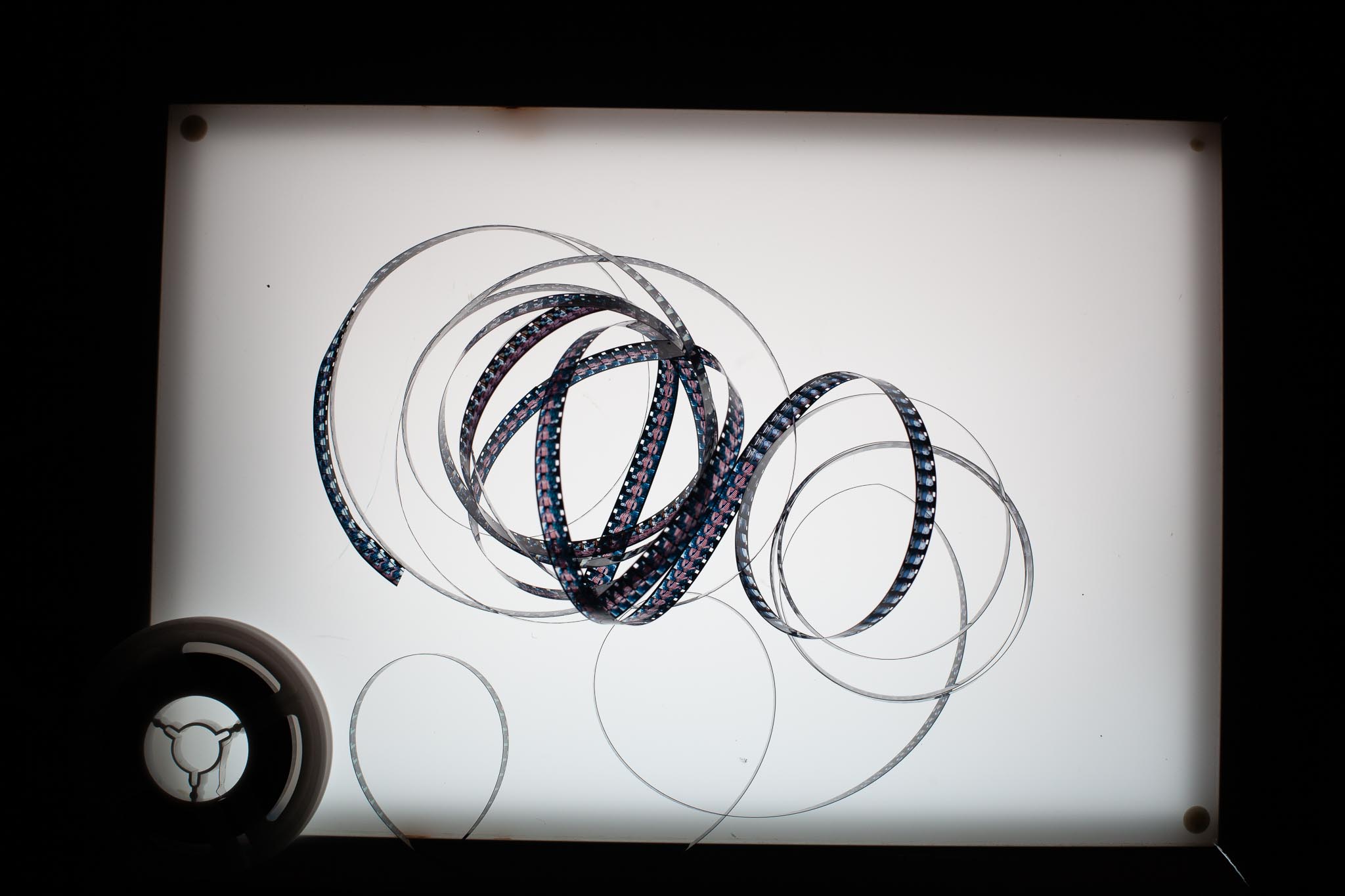 Wanted to photograph this strip of film I have although not sure how, but borrowed a macro lens and a small lightbox. Never worked with a lightbox before and am sure there must be a range of different qualities and light types which one can acquire. This one is like the continuous lights I used years ago when first starting out. It was suggested that I switch to fluorescent in WB but it was way too blue so I tried every setting and in the end, Auto was best although every frame is different even though I shot in the dark to avoid mixing sources.