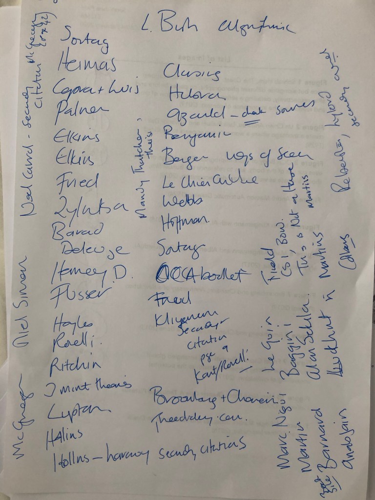 • I went through citations this morning listing everyone mentioned so I can double-check the bibliography- I reckon I’ll need a day set aside to make sure it’s absolutely accurate – far from it right now.